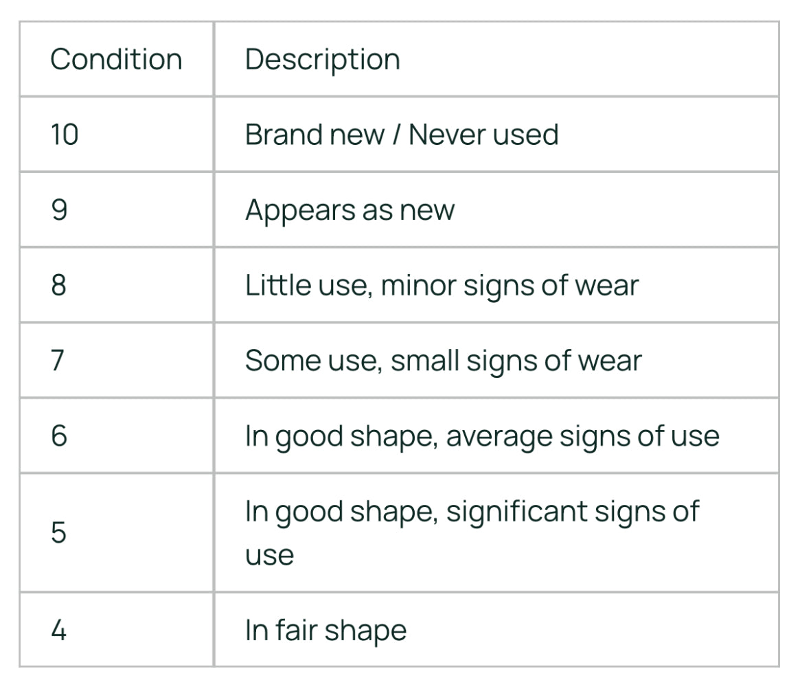 | 5 | In good shape, significant signs of use |